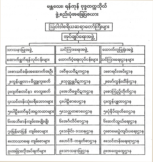 In order to more effectively carry out our Buddhist missionary tasks throughout Burma, our 'Buddhist University' (Mandalay and Rangoon) is preparing to open 'Buddhist Missionary Colleges' in the monasteries existing in the important district-towns (about twenty in number) situated in the seven Divisions and seven States of Burma, year by year, since about the end of 2008, for giving a rare opportunity of learning "Buddhism, Pali, Sanskrit, Philology and English" (covering the Basic and Advanced Diploma courses) to the monks, nuns and laypeople, who are not lucky enough to live in Mandalay and Rangoon, the most important cities of Burma. Those who have passed the Basic and Advanced Diploma examinations are, for their further study, admitted to "Buddhist University" for B. A. and M. A. degrees, either in Mandalay or in Rangoon.