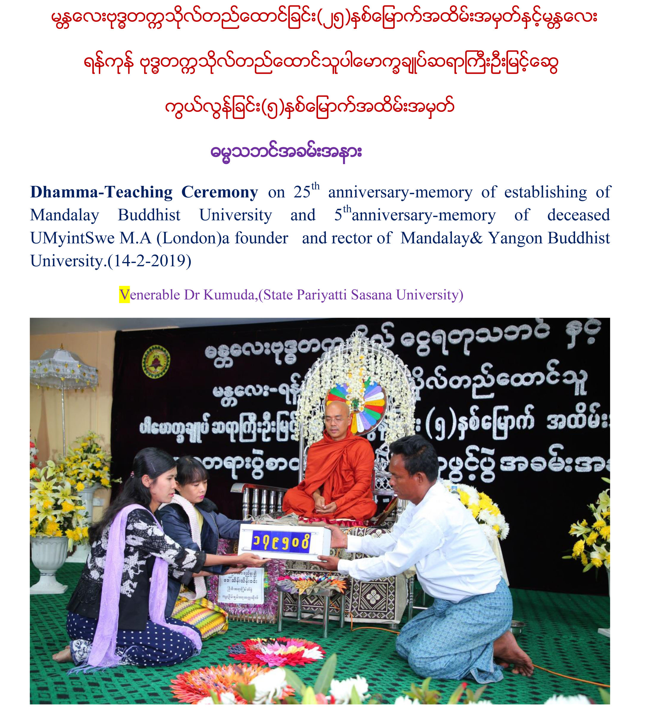မန္တလေးဗုဒ္ဓတက္ကသိုလ်ဓမ္မသဘင်(တတိယနေ့)Dhamma Teaching Ceremony at MDY MBU Published: 24 February 2019 Written by MBU admin